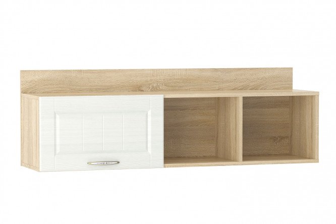 Olivia shelf made of laminated chipboard, MDF, PVC in the color “Sonoma oak, white wood”.