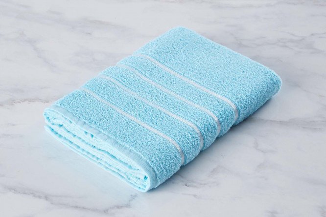 A bright terry towel is part of the Orion collection of bathroom textiles. The towel has a pleasant texture: soft, fluffy, pleasant to the touch. Even after repeated washings, the product does not fade or lose shape.