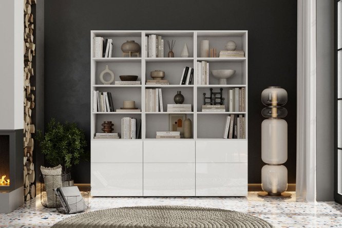 Oskar Amika library with push-to-open, white / white gloss