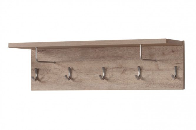 The functional Toscana hanger panel is equipped with a spacious shelf for hats, umbrellas, gloves and other accessories. The model is made of high quality laminated chipboard in the color of noble oak and has a pronounced woody texture. Reliable and durable metal hooks are perfect for storing heavy outerwear that dries quickly and is well ventilated in an open space. The structure can be mounted on the wall at any convenient height. Tuscany will add coziness to the interior of the hallway and save useful space.