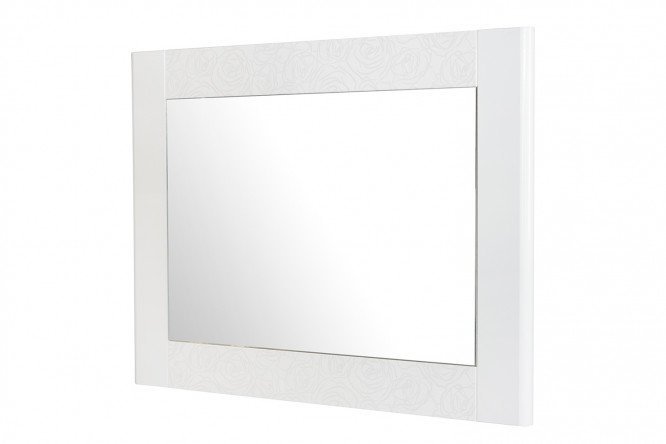 The Amelie mirror panel is part of a furniture set with the same name. This element of interior decor looks elegant and original, thanks to its white glossy frame with patterned inserts in silver-gray tones. The panel is made of strong and durable laminated chipboard, mounted on the wall, and combines advantageously with a dressing table or chest of drawers from the Amelie furniture collection.