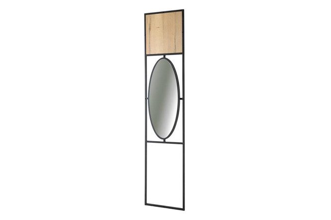 The Loft wall panel with mirror is an original model that will allow you to create a stylish set with other products in the collection, and can also be used separately or integrated into any other design solution. An oval mirror in a black frame is mounted in a steel console. An insert with a golden wood finish softens the brutal design and gives it a cozy warmth. High-quality mirror fabric and durable metal elements guarantee a long service life of the product.