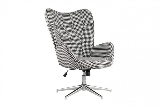 The Philadelphia chair is equally suitable for working in a home office and relaxing. A feeling of comfort is provided by a height-adjustable seat and a rocking mechanism that helps avoid muscle stiffness during prolonged sitting. The high back with a slight curve seems to hug the seated person and allows you to fully recline. The patterned stitch and decorative buttons add additional expressiveness to the model. The metal cross beams are equipped with plastic plugs to protect the floor from scratches.