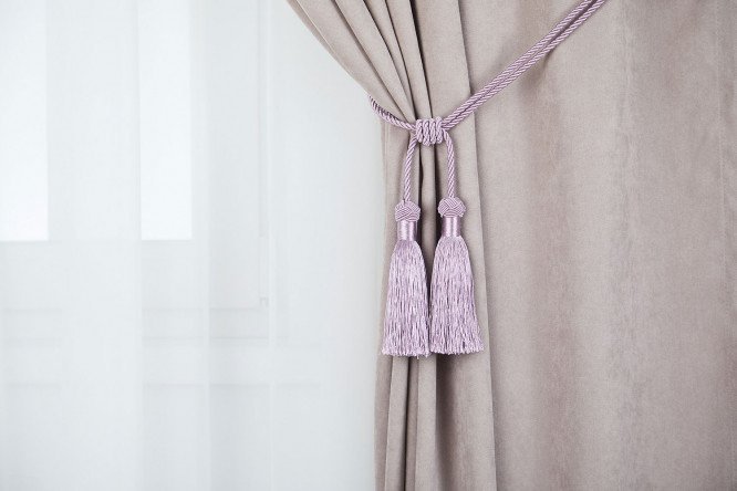 The Kerry tie-back brush will help secure tulle or curtains in the desired position without leaving marks or snags on thin fabric. A single-color twisted cord will complement curtains of any color and texture – from heavy velvet to light organza, and will provide the opportunity to create spectacular draperies. There is a tight knot in the central part of the accessory; freely hanging lush tassels are decorated with macrame elements. For fixing on a wall holder, the ends of the product are shaped into loops.