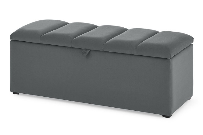 Pouf Beta will provide a convenient place in the hallway for changing shoes and at the same time additional storage space. In the drawer under the soft seat you can put slippers, accessories and cosmetics for shoe care, and household chemicals. For ease of opening, a fabric loop is sewn between the inner and outer upholstery; the lid is held open with the help of retaining tapes. The microvelor cover does not electrify, does not attract dust and pet hair, and is easy to dry clean.