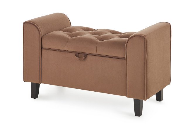 The Toulouse pouf resembles a smaller version of the Recamier banquette, spectacular and functional. Not only is it a comfortable place to sit, but it also offers ample storage. The pouf is durable, reliable, stable, and thanks to the small armrests and soft seat, it is very comfortable. It is completely covered with soft micro-velor and quilted, which gives it an organic, finished look. The wear-resistant coating looks elegant, retains its original appearance for a long time, does not fade, and is easy to clean.