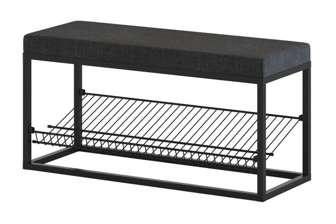 Pouf with shelf for shoes LPS-53, upholstery color gray, frame black moiré