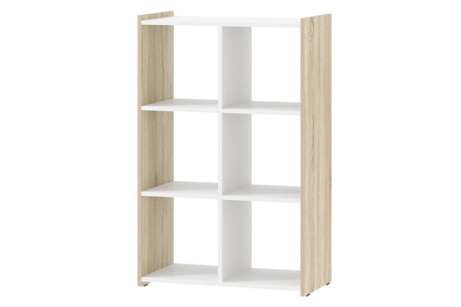 The functional Simple bookcase was created specifically for a child’s room, but it will look great both in the bedroom and in the living room. It will become a convenient place to store many things. In six spacious sections that form four shelves, you can place toys, books and beautiful interior accessories. Thanks to its small size and lack of a back wall, the product does not look too massive. The Sonoma oak finish on the cabinet combined with white inserts looks fresh and original. The stylish design makes the rack an ideal complement to the furniture composition of the room and an original element of its decor.