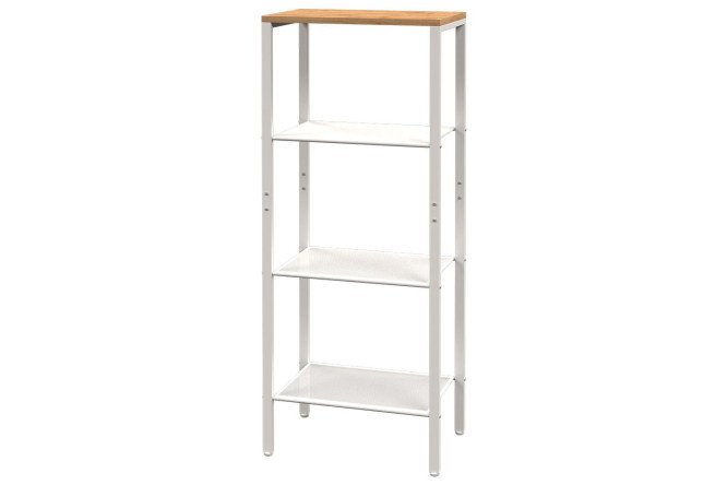 The Toronto bookcase is made of plain metal, and the top shelf, decorated with a wood-like finish with a pronounced texture, gives it an original look and expands the possibilities of using the product in interiors of different styles.