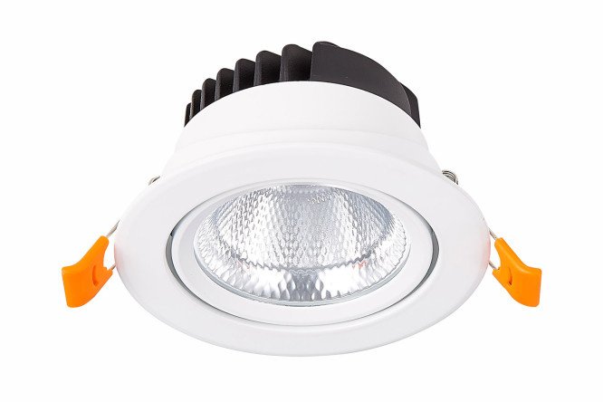 There is a fairly wide rim around the lamp, which remains outside and contributes to the design of the room in the style you choose. The main advantage of the product is the rotating mechanism, which allows you to direct the light flux to the desired area.