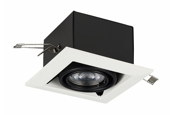 The rectangular recessed luminaire is equipped with a GU10 base and a rotating mechanism. Available in two sizes, in black and with contrasting frames in silver and white.