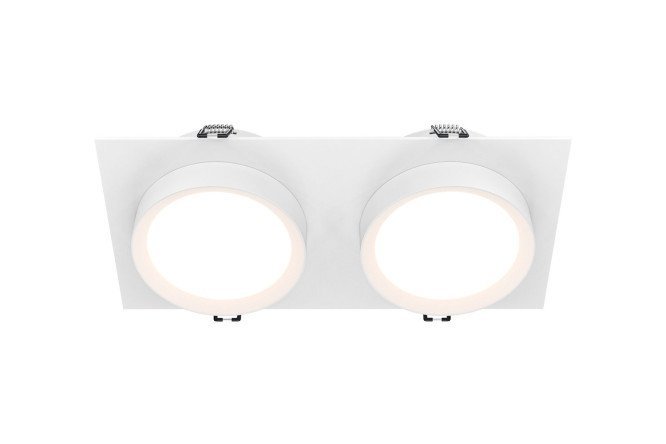 The recessed double luminaire MAYTONI Downlight Hoop will become a bright and at the same time economical source of light for living rooms, kitchens, and hallways. The frame of the product is made of aluminum, therefore it is strong and reliable and is not subject to corrosion. The model is equipped with plastic ring-shaped diffusers, thanks to which the lamp is slightly recessed, which looks very stylish.