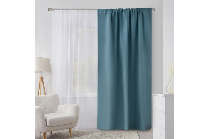 A curtain made of thick fabric combines decorative and sun protection functions, providing comfortable darkening in the room when necessary. The fabric with an expressive matting texture is resistant to creasing and ultraviolet rays, acts as an additional filter against street dust, and drapes easily. Wide curtain tape helps control the uniformity of folds. Following the care instructions – washing at 30°C without spinning, drying flat – will increase the service life of the product.