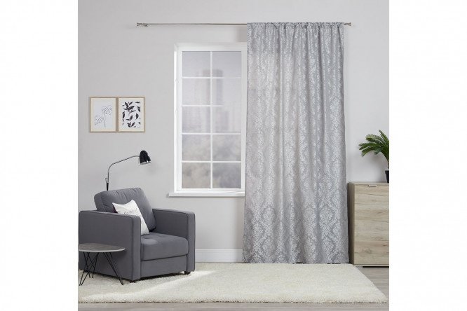 Thanks to the textured surface and jacquard pattern, the ribbon curtain looks elegant and solemn. Once upon a time, curtains with such patterns decorated the palaces and castles of the European nobility. And today, a large, complex, repeating pattern looks gorgeous both on a traditional window and on a “French balcony” – a window opening with floor-to-ceiling glazing. Thick, pleasant-to-touch polyester fabric allows you to create elegant drapery, and a supportive scoop lets light into the room.