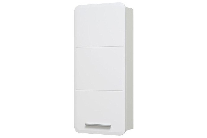 Bathroom cabinet RUNO ERIKA is a modern and stylish design in the design of the bathroom. The bathroom wall cabinet ERIKA, made in white with a glossy finish, will perfectly decorate any bathroom interior. The product has one hinged door, and there are two built-in shelves inside the cabinet. The bathroom cabinet is equipped with hinges with a built-in closer, awnings and one handle.