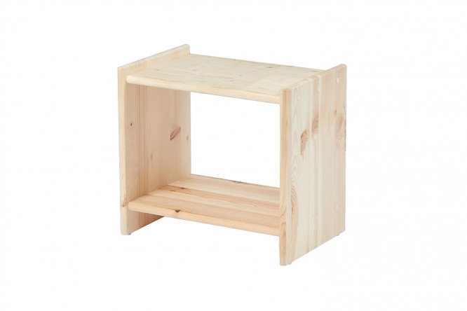 To install the Rino cabinet, you do not need a large space next to the head of the bed. The compact model has an extremely simple design and laconic design, which does not prevent it from coping with the function of storing items that accompany going to bed. A reading lamp, a tray for a glass of water, and a container with contact lenses will take place on a flat surface. The lower open shelf can be used for books, gadgets and chargers. This product made from solid pine will be appreciated by fans of eco-style in the interior.