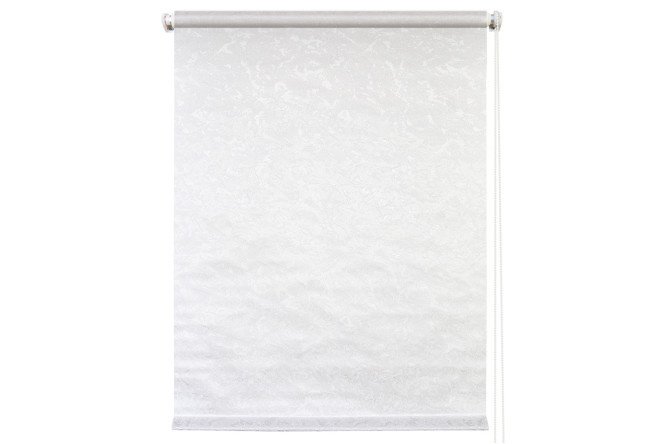 The white Frost roller blind got its name thanks to the fabric with a pattern reminiscent of frosty patterns on window glass. The canvas is made of polyester impregnated with a dust-repellent composition. The curtain will help solve several problems at once: it will protect from too bright sunlight, save space, and avoid drilling holes. The choice of mounting method is up to the owner: the product can be fixed to the frame without drilling – using mounting brackets and double-sided tape, or secured with screws to the ceiling or wall. All mounting parts are included.