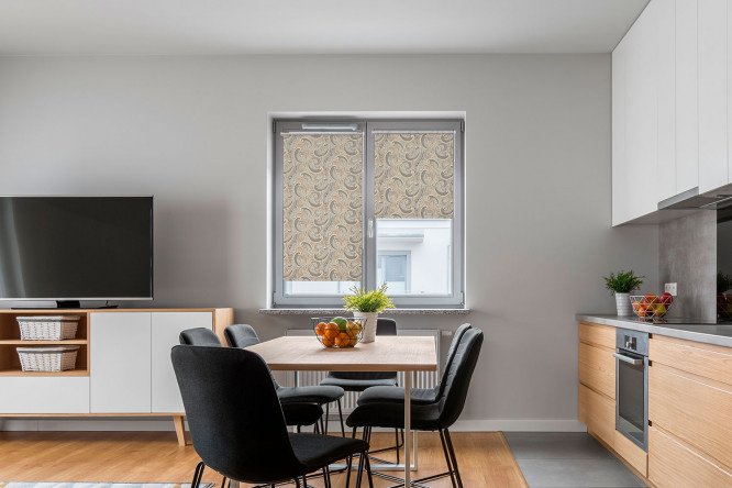 A stylish roller blind will decorate the interior, making it even more aesthetically pleasing, and will reliably protect the room from direct sunlight. The model is made in pleasant colors from dense, smooth artificial fabric, which is easy to care for and does not fade under the influence of ultraviolet radiation. A convenient chain mechanism allows you to smoothly wind the curtain onto a durable roller, adjusting its height at your discretion, and firmly fix the bottom of the curtain at the desired level. The product will go well with traditional curtains.