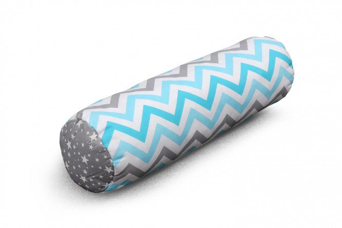 Roller Sonya made of cover material: 100% cotton calico, filling: polyester fiber in the color “celestial zigzag, starfall on gray”.