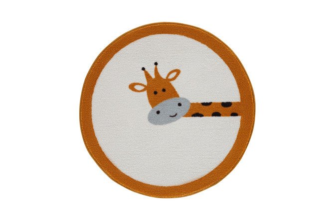 The Hall Giraffe round rug can enliven any space, but it will be especially appropriate in a children’s room. You can lay it next to the crib or in the play area, where the child, sitting on the floor, learns to build towers from cubes, assemble Lego, launch a train and cars. Although the main background of the accessory is light, you don’t have to worry that juice or compote spilled by your baby will leave stains: the short terylene pile has water-repellent properties and is easy to clean. The non-woven fabric base fits tightly to the floor covering, preventing the carpet from bunching up or sliding. The edges of the product are reinforced with overlock stitching.