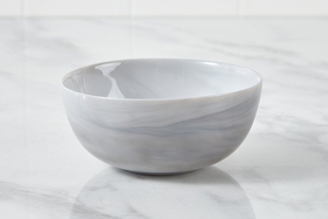 In the Marble granite salad bowl you can serve a classic Olivier salad to the New Year’s table, and at a party in honor of the opening of the barbecue season – a bright salad of radishes and greens full of vitamins. The round container is made of toughened opal glass with a spectacular texture that imitates the natural pattern of gray-white marble. The inner surface of the walls is glossy, the outer surface is satin polished. The product is not only beautiful, but also practical: it is easy to wash off food residues, suitable for storage in the refrigerator and heating in a microwave oven.