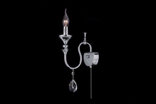 The Riga sconce from the famous Citilux brand will become an original source of additional lighting for the living room, especially in combination with a chandelier from the collection of the same name. The device is an elegant metal structure in the form of an open candelabra, decorated at the bottom with a crystal pendant. The stylish appearance of the product is given by the frame coating in the color of noble metal and the incandescent lamp in the shape of a candle in the wind. The light weight allows you to mount the sconce to a wall made of any material, including plasterboard.