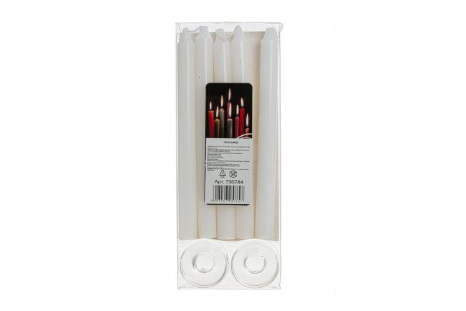 Set of five candles and two glass candlesticks. The easiest way to create a cozy or romantic atmosphere. Candle diameter 2 cm.
