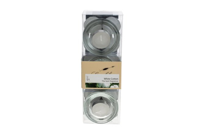 Set of fifteen candles and three glass candlesticks. The easiest way to create a cozy or romantic atmosphere. Candle diameter 3.5 cm.
