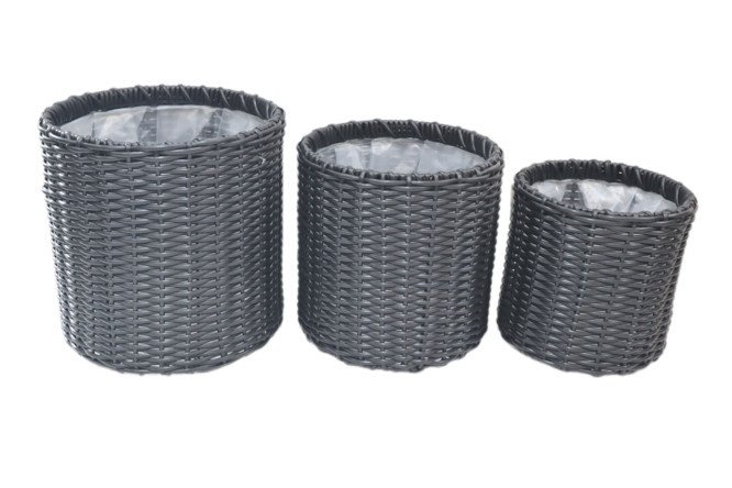 Flowerpots are woven from artificial rattan, which, unlike natural material, can withstand external influences. It is not afraid of moisture and sunlight; the pots can be washed under running water.
