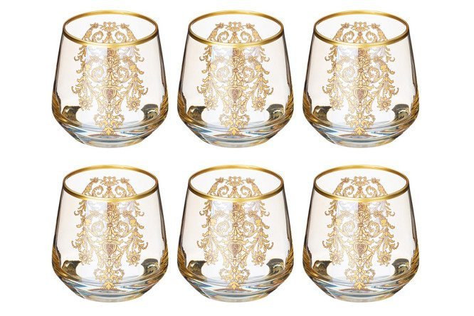 A set of DECORES glasses will help make any table setting truly festive and solemn. The glasses, decorated with intricate gold decoration and matching edging, look like works of art worthy of a royal table.