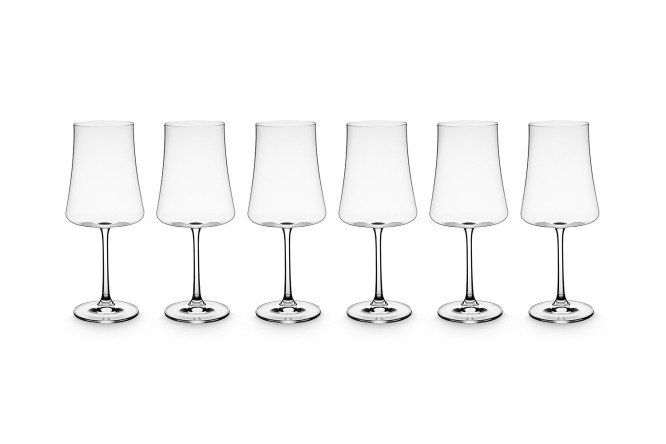 The XTRA wine glass set, which includes six items, can be a wonderful gift for a wedding, anniversary or other celebration. It is also worth purchasing for those who want to have a set of elegant glasses in their home for serving according to all the rules of classic etiquette. The shape of the vessels made from the famous Czech glass corresponds to the recommendations of professionals for the proper serving of this type of wine. Designers have added a touch of modernity to the traditional silhouettes of wine glasses: a flat bottom, dynamic lines. To set the table in a uniform manner, you can order XTRA sets for other types of wines.