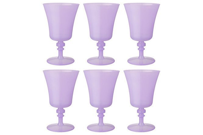 A set of Iconic glass glasses in spectacular colors is useful for serving wine, juice, mineral water, cocktails, and multi-layered desserts. Glasses with bowls that widen at the top and curly, stable legs will look great in any serving style.