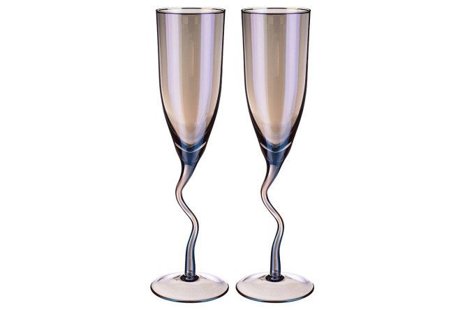 A set of Lefard Lapis Lazuli glasses will not go unnoticed even among the most exquisite tableware and other serving elements. The classic tulip-shaped bowl stands on a thin, graceful, curved, wave-shaped leg. The shades of blue glass from which the set is made form spectacular shimmers depending on the thickness of the glass elements. Glass is absolutely safe, the dishes can be used daily.