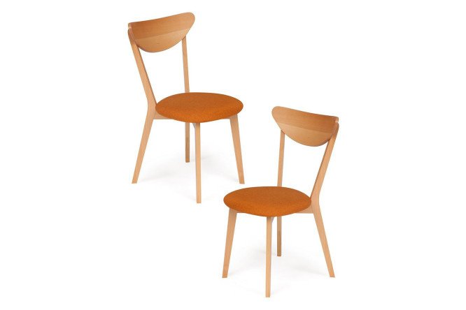 The set of two Maxi dining chairs is the epitome of simplicity and elegance. This model can transform the atmosphere, give the interior individuality and attractiveness. The combination of laconic design and maximum comfort will please the most demanding owners. The slightly curved backrest is ideal for relaxing. The orange fabric upholstery of the seat harmonizes perfectly with the natural wood-colored frame. The strong frame and stable legs of the chair are made of solid beech. Natural wood is a strong and durable material that does not require special care and can withstand heavy loads. The chairs are very easy to assemble, assembly instructions are included.