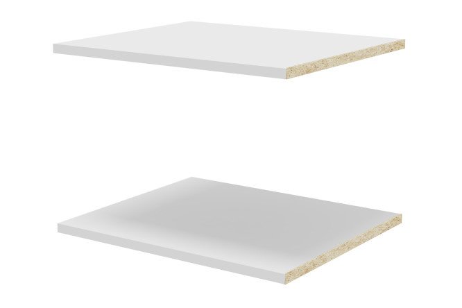 The set of shelves is used for the internal arrangement of Oscar modular wardrobe systems. The set includes 2 elements made of chipboard. The front edges of the slabs are covered with an end edge. The shelves are suitable for sections with a depth of 40 cm, are installed using mortise holders and can support 20 kg each. They are convenient for storing linen, boxes of clothes and other wardrobe items. The laminated surface is undemanding in maintenance and retains its original properties and appearance for a long time. It is recommended to wipe it with a soft cloth; in case of persistent stains, it is advisable to use special furniture cleaners.