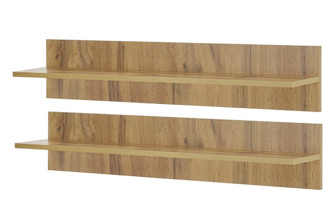 Set of Point shelves made of laminated chipboard in Wotan oak color.