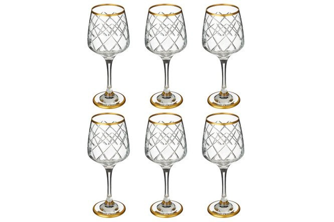 The glass from which the wine glasses are made is of high quality; it will not interfere with admiring the color of the drink, but will add brightness to it thanks to the glare of light on the walls and refraction on the details of the pattern.