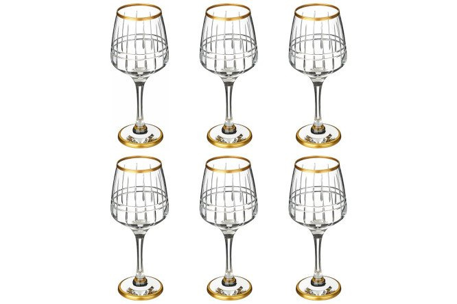 A set of DECORES clear glass wine glasses with spectacular decor and gold edging will decorate any table setting – everyday and the most formal. You can serve wine, champagne, and other strong and non-alcoholic cocktails in stylish glasses.
