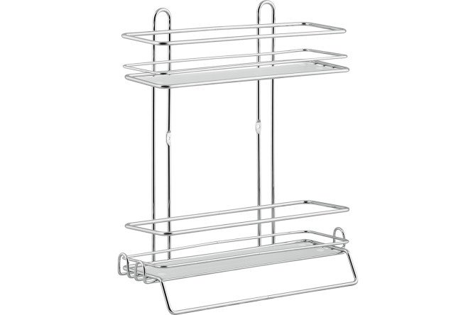 Two-tier rectangular wall shelf made of galvanized steel in chrome. Galvanic coating provides increased resistance to corrosion, so the shelf will last longer and maintain its original appearance. The increased shelf width and distance between tiers provide good storage capacity. The high side prevents the contents from falling out. The included plastic bottom allows you […]