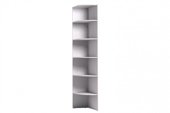 The rack will help make the interior more expressive and functional. It can be used independently, installed in a free corner, or together with a cabinet from the collection of the same name. The shelving unit takes up little space, but instead of a flat end wall of the cabinet, you get several open, radial-shaped shelves. You can place many different little things, decorative elements, and photographs on them. The rack is made of laminated chipboard, a lightweight and durable material; the shelves can withstand significant loads.