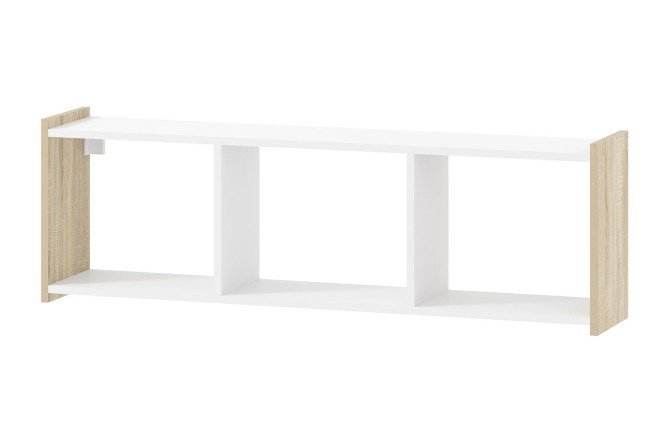 The Simple shelf will not only complement the decor by combining different pieces of furniture into one, but will also become a real decoration for the living room, bedroom or nursery. It is divided into three sections and can withstand heavy loads, which allows you to conveniently organize the storage of many items – from books and toys to various accessories. The absence of a back wall visually simplifies the design, and the noble colors of the body – bright white and Sonoma oak – refresh the interior of the room. The shelf is made of high-quality laminated chipboard and has a long service life.