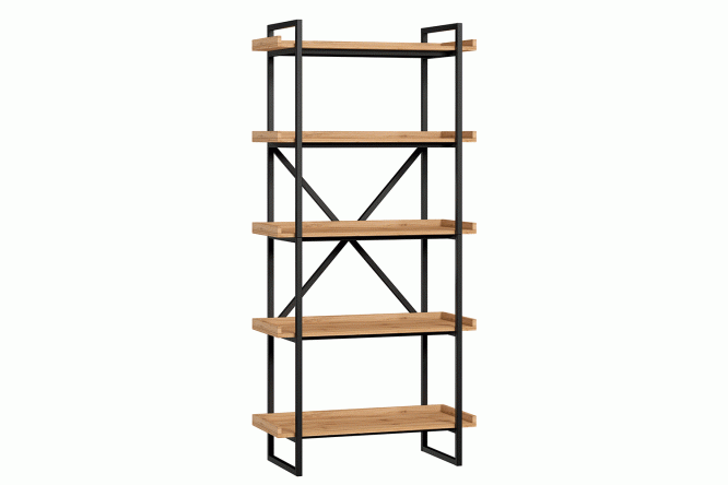 Loft rack made of metal, laminated chipboard in the color “black, Wotan oak”.