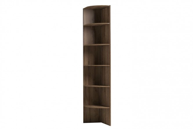 The rack will help make the interior more expressive and functional. It can be used independently, installed in a free corner, or together with a cabinet from the collection of the same name. The shelving unit takes up little space, but instead of a flat end wall of the cabinet, you get several open, radial-shaped shelves. You can place many different little things, decorative elements, and photographs on them. The rack is made of laminated chipboard, a lightweight and durable material; the shelves can withstand significant loads.