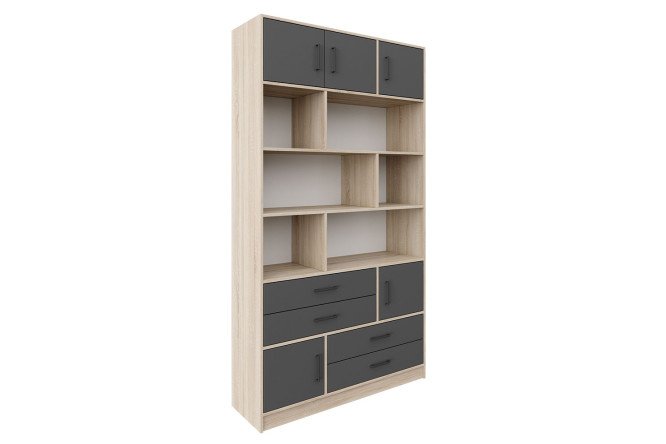 Shelving unit Virage with 4 drawers and 5 doors, sonoma oak/graphite gray
