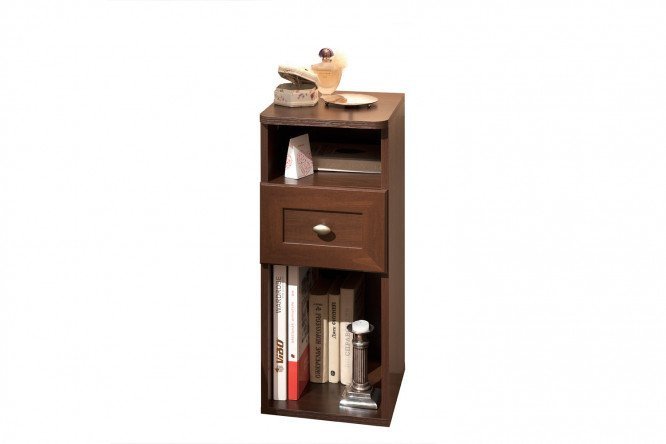 The bedside table from the Sherlock furniture collection is characterized by a classic shape and laconic design. This solution can be successfully used in any interior design of bedrooms. The strong, stable frame is divided into two open niches by a drawer. Three storage zones make the small model comfortable and spacious. With the Sherlock nightstand in the bedroom you will always have the little things you need in everyday life and your favorite literature at hand. The top panel can be used for an elegant night light in a classic style.