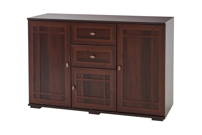 The deep drawers of the chest of drawers are equipped with technological telescopic ball guides for full extension and can withstand loads of up to 25 kg. Two side niches are equipped with hinged doors and spacious shelves. The cabinet is simply indispensable for storing a large number of things, and it can be used as a place for the TV. Time-tested forms, light framed fronts with binding and decorative layout, noble decor – all this makes the Sherlock collection a bright representative of the classic style. Such furniture is not subject to changing fashion trends and goes well with both classic and modern interiors. In the production of the modular series for the living room and library, only high-quality E1 class laminated chipboard is used, which means that only low-toxic resins with a low formaldehyde content are used in production. For lamination, a film is used that provides high quality surfaces, resistance to mechanical and thermal influences, as well as to aggressive and humid environments. This coating is applied by pressing, due to which it is inseparable from the base plate, which significantly extends the service life of the product.