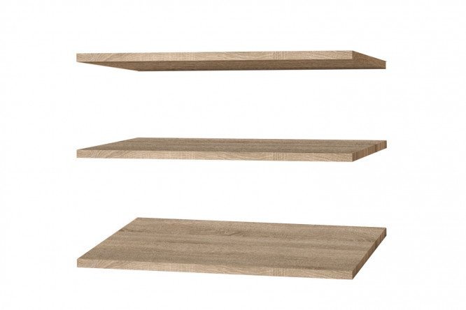 The Sherlock shelf set is designed for a hinged wardrobe from the furniture collection of the same name. The elements are made of laminated chipboard with edged ends. The surface of the material is abrasion-resistant and practical to use, easy to clean and does not absorb dirt. The kit includes plastic shelf holders that are attached to the inner walls of the furniture product. By additionally equipping the closet with shelves, you can get more storage space in the hallway.