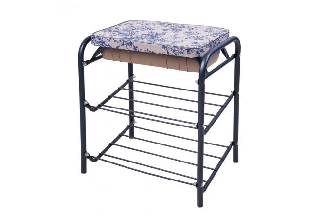 Shoe bench BP1 with 3 shelves, upholstery color “De Jouy”, frame sapphire