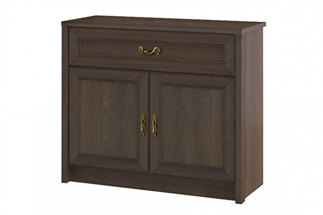 The Florence shoe cabinet can be used individually or as one of the elements of a modular hallway. The surface of the furniture, covered with a film made in Germany, imitates the texture of natural noble wood. Decor with a 3D effect, Italian antique gold-look front fittings, a classic paneled facade, and elegant end caps give the cabinet a luxurious look. In addition to a spacious two-door shoe cabinet, Florence is also equipped with a drawer. This functional model will help make the hallway practical and cozy.