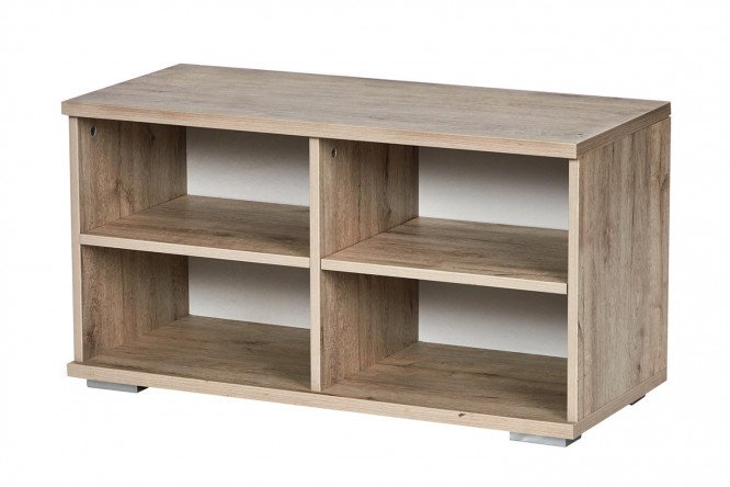 Shoe cabinet Tuscany is practical furniture made of chipboard for a hallway in a classic or country style. A compact shoe rack with simple, clear shapes is tinted in the color of noble oak wood, equipped with 4 open shelves-niches that can accommodate up to 8 pairs of shoes. Laconic design, lack of facades is the advantage and highlight of the model.